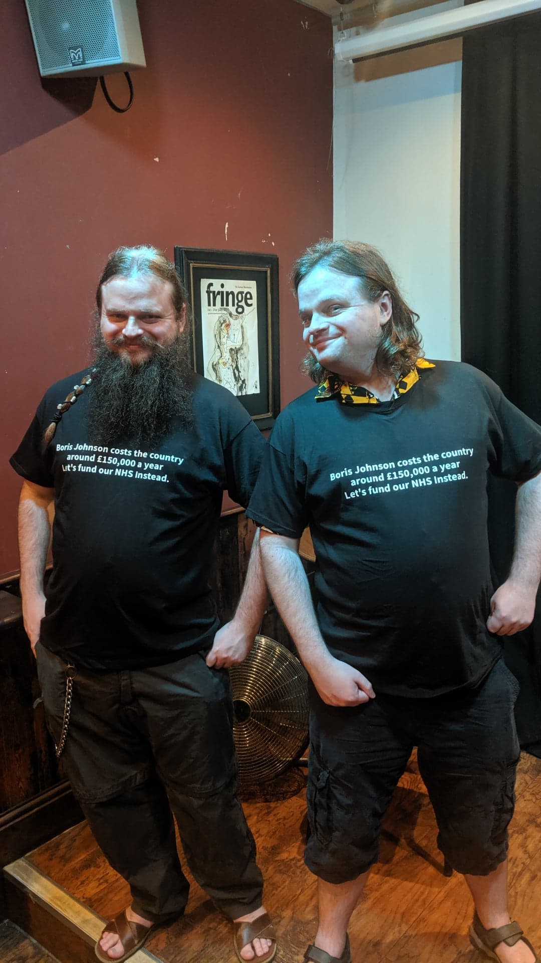 Some of the more eagle-eyed among you at last night’s show might have noticed Scarlett at the door and Jonny on stage wearing some snazzy limited edition T shirts.