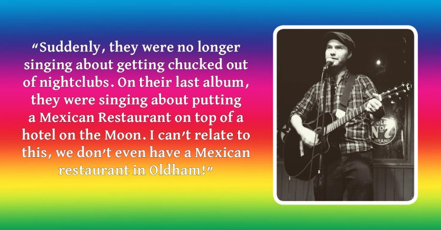 I can’t relate to this, we don’t even have a Mexican restaurant in Oldham!! In the show, I offer a compromise, where I have written a song in the style of the early Arctic Monkeys but from the perspective of a middle aged man!
