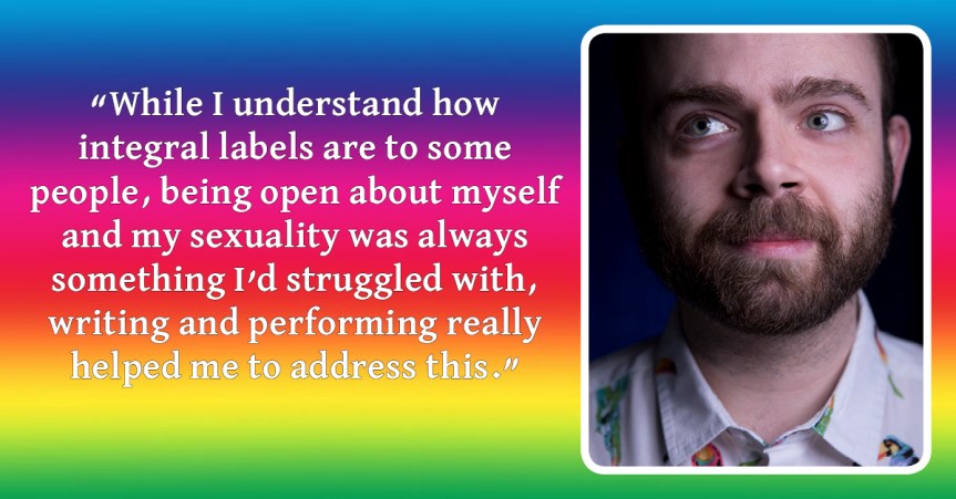 While I understand how integral labels are to some people, being open about myself and my sexuality was always something I’d struggled with, writing and performing really helped me to address this.