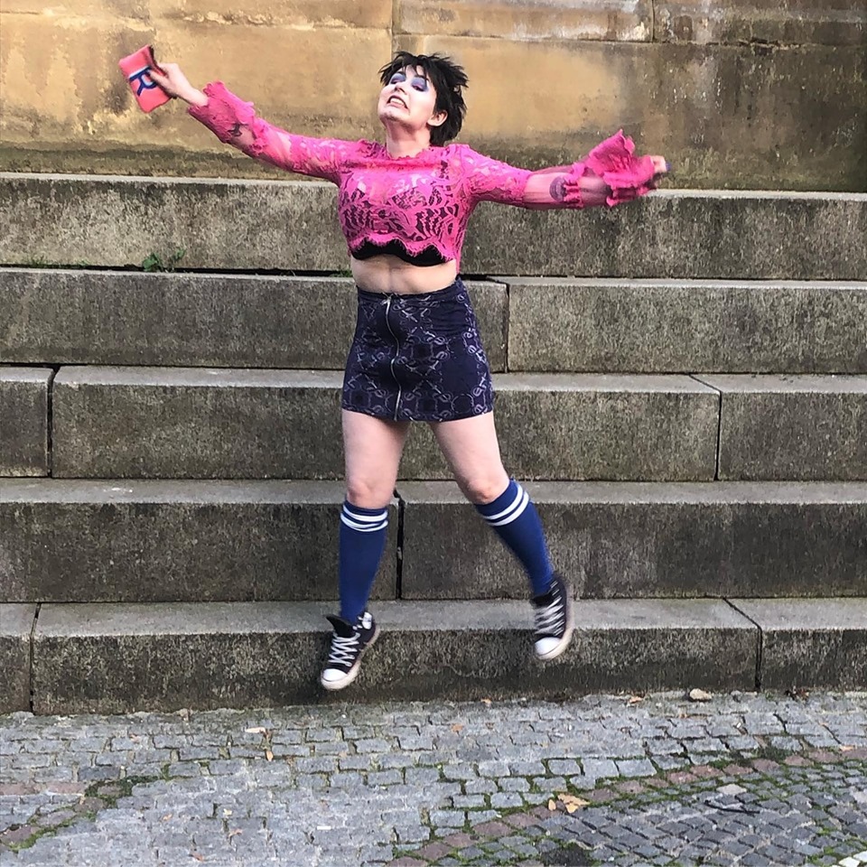 Jonny performs quite aggressive yet whimsical socio-political commentary with high energy and big queer flair.