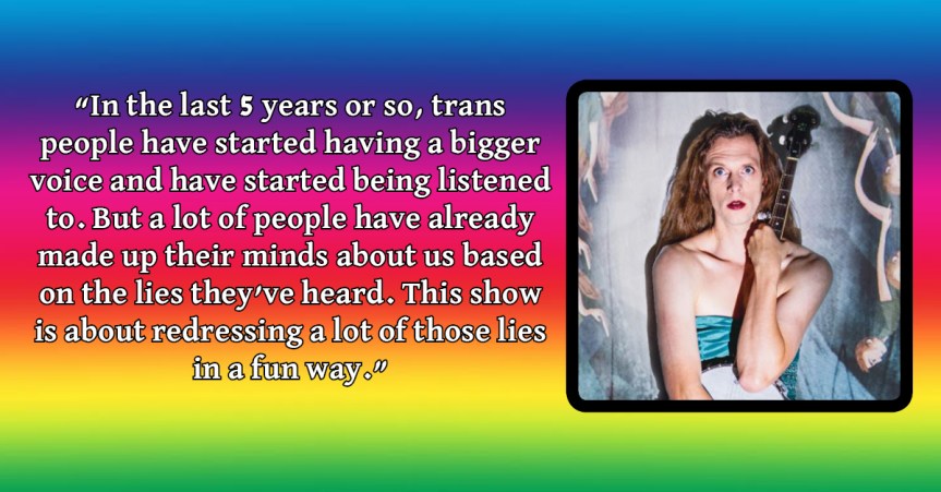This has been going on for decades and, finally in the last 5 years or so, trans people have started having a bigger voice and have started being listened to. But a lot of people have already made up their minds about us based on the lies they’ve heard. So it’s an uphill struggle a lot of the time. This show is about redressing a lot of those lies in a fun way.