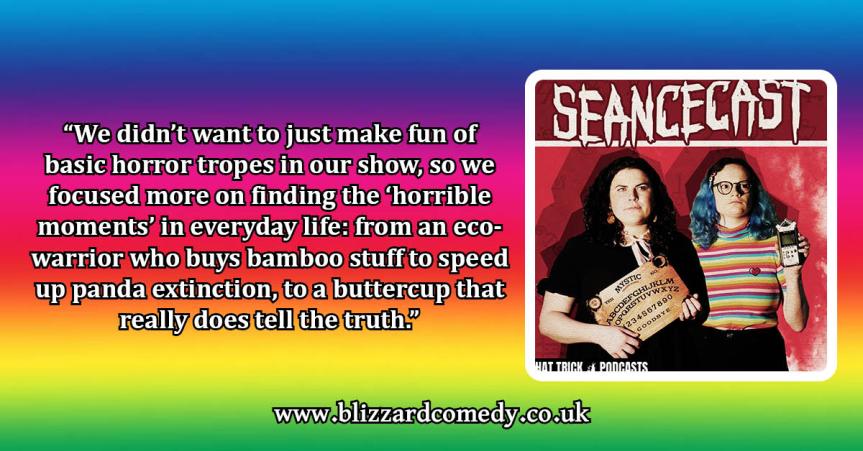 SeanceCast is an extremely haunted sketch show, which follows two beautiful women (spoiler alert: it’s us) as we hold seances in order to find otherworldly content for our podcast. Each episode has its own story, as well as four “scenes from the beyond” performed by some of the best comedy talent in the UK… we’re talking Amy Gledhill, Kiell Smith-Bynoe, Alison Thea-Skot, Kat Bond, Nimisha Odedra, Toussaint Douglass, Amy Sutton, Jen Ives and Mali Ann Rees.