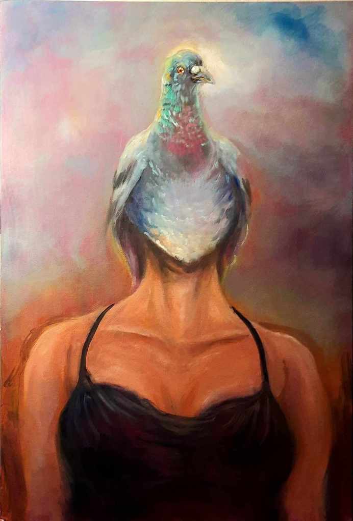 Besides that, I suppose it’s things where I have been able to create the idea that I am picturing with the greatest clarity. I have an oil painting in a Magritte style that I did relatively recently, of a woman whose head is a pigeon, of which I am definitely quite fond!